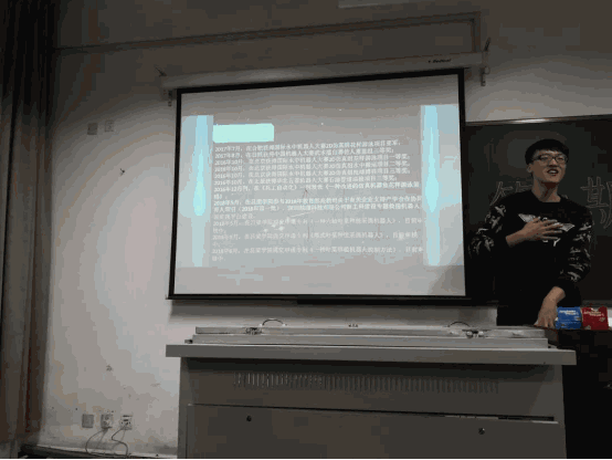 开始,王浩男学长进行自我介绍。他温和谦逊的态度使我们感到春风拂面般的舒适。王浩男学长的座右铭是“迎接奥斯特里茨的太阳”,他对人生前途的乐观态度影响着我们每一个人,也许这就是他获得诸多荣誉的原因之一吧。