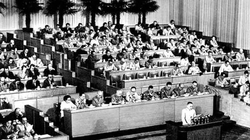 1956年,中国共产党第八次全国代表大会在北京召开。这次大会是在我国社会主义改造基本完成,党面临着新的形势和任务的情况下召开的。出席大会的代表1026人,代表党员1073万人。毛泽东致《开幕词》,刘少奇作《政治报告》,周恩来作《关于发展国民经济的第二个五年计划的建议的报告》,邓小平作《关于修改党的章程的报告》,朱德、陈云、董必武等发言。