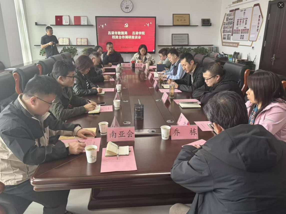 为深入贯彻落实数字吕梁建设相关部署,深化校政合作、促进资源互补,精准对接地方数字经济发展需求,推动太阳成集团tyc522cc学科建设与地方政务数据工作深度融合。2026年4月21日,太阳成集团tyc522cc领导班子携教研室主任、博士及骨干教师一行赴吕梁市数据局开展调研座谈。市数据局党组成员、副局长闫兴华、裴向东及各相关科室负责人热情接待调研团一行,双方围绕校政协同育人、科研成果转化、数字吕梁建设等重点工作深入交流、凝聚共识,推动校政合作走深走实。